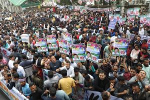 বিএনপি’র ভাইস চেয়ারম্যান অধ্যাপক এজেডএম জাহিদ হোসেন বলেন, বিশ্ব মানবাধিকার দিবসে আজকে বাংলাদেশে মানবাধিকার ভূলণ্ঠিত, মানুষের অধিকার, গণতন্ত্র ও আইনের শাসন কোথাও নেই। এই অবস্থায় সকলকে সোচ্চার হতে হবে, সকলকে অন্যায়-অবিচার-কুশাসনের বিরুদ্ধে সোচ্চার হতে হবে। নেতাকর্মী সকলকে ভয়ভীতি উপেক্ষা করে আগামীদিনে গণতন্ত্র পুনরুদ্ধারের যে সংগ্রাম চলছে সেই সংগ্রামকে আরও শানিত করার জন্য আজকে যেমন রাস্তায় নেমে এসেছেন, ইনশাআল্লাহ স্বৈরাচারের পতন না হওয়া পর্যন্ত আপনারাসহ আমরা রাস্তায় থাকবো।