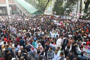 জাতীয় প্রেস ক্লাবের সামনে সম্মিলিত পেশাজীবী পরিষদের সিনিয়র নেতা রুহুল আমিন গাজীর নেতৃত্বে আলাদা মানববন্ধন হয়। সেখানে পেশাজীবী নেতারা বক্তব্য রাখেন। পেশাজীবী নেতাদের মধ্যে অধ্যাপক আব্দুল কুদ্দুস, ডা. সিরাজুল ইসলাম, আব্দুল হাই সিকদার, রিয়াজুল ইসলাম রিজু, শহীদুল ইসলাম, অধ্যাপক গোলাম হাফিজ কেনেডি, অধ্যাপক কামরুল ইসলাম, সাংবাদিক রাশেদুল হক প্রমুখ উপস্থিত ছিলেন।