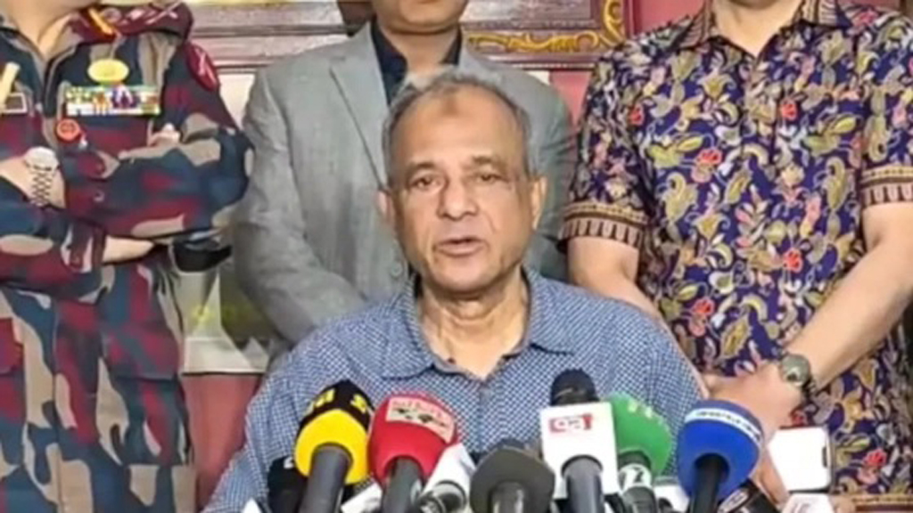 রাত ৩টার দিকে বিজিবি পুলিশ ও সেনাবাহিনীর পদস্থ কর্মকর্তা পরিবেষ্টিত হয়ে সাংবাদিকদের সামনে আসেন স্বরাষ্ট্র উপদেষ্টা।