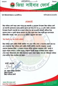 জিয়া সাইবার ফোর্স কেন্দ্রীয় নেতাদের শোকবার্তা