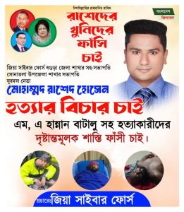 জিয়া সাইবার ফোর্স কেন্দ্রীয় কমিটির পক্ষ থেকে হত্যাকারীদের বিচারের দাবি