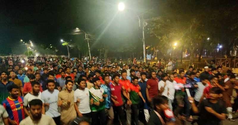 বুধবার রাত সোয়া ১টায় বিশ্ববিদ্যালয়ের হলপাড়া থেকে মিছিল নিয়ে রাজু ভাস্কর্য হয়ে শাহবাগ প্রজন্ম চত্বরে অবস্থান নেন শিক্ষার্থীরা। সেখানে তারা সংক্ষিপ্ত সমাবেশ করেন।