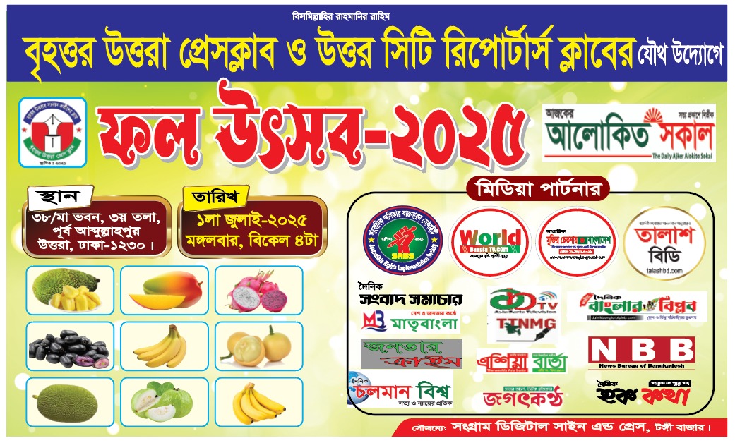 গতকাল, মঙ্গলবার, ১ জুলাই, ২০২৫ তারিখে ঢাকার উত্তরায় অনুষ্ঠিত হলো এক ভিন্নধর্মী মৌসুমি ফল উৎসব। বৃহত্তর উত্তরা প্রেস ক্লাব এবং উত্তর সিটি রিপোর্টার্স ক্লাব-এর যৌথ উদ্যোগে আয়োজিত এই উৎসব সাংবাদিকদের জন্য ছিল এক আনন্দময় মিলনমেলা। উত্তরা আব্দুল্লাহপুরের ৩৮ মা ভবনের তৃতীয় তলায় বিকাল ৪টায় এই অনুষ্ঠানের আয়োজন করা হয়।