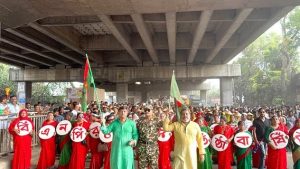 বৃহস্পতিবার বিকেল চারটার দিকে টঙ্গীর মিলগেট এলাকা থেকে শোভাযাত্রা শুরু হয়ে ঢাকা-ময়মনসিংহ মহাসড়কের বিভিন্ন অংশ প্রদক্ষিণ করে কলেজগেট এলাকায় গিয়ে শেষ হয়।