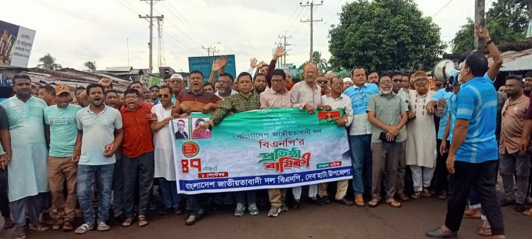মো:রিয়াজুর ইসলাম,স্টাফ রিপোর্টার_ সাতক্ষীরার দেবহাটায় বিএনপির ৪৭তম প্রতিষ্টা বার্ষিকী উপলক্ষ্যে র্যালি ও সমাবেশ অনুষ্ঠিত হয়েছে। দেবহাটা উপজেলা বিএনপির আয়োজনে প্রতিষ্টা বার্ষিকীর র্যালিটি পারুলিয়া বাসস্ট্যান্ড চত্বর থেকে শুরু হয়ে বাজার প্রদক্ষিন করে বিএনপি অফিসের সামনে এক সমাবেশ অনুষ্ঠিত হয়।