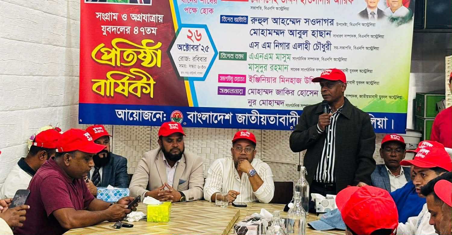 বাংলাদেশ জাতীয়তাবাদী যুবদলের ৪৭তম প্রতিষ্ঠাবার্ষিকী উপলক্ষে অস্ট্রেলিয়ায় এক আলোচনা সভা অনুষ্ঠিত হয়েছে। রবিবার (২৬ অক্টোবর) সিডনির লাকেম্বাস্থ রেস্টুরেন্ট ‘নবান্ন’-এ যুবদল অস্ট্রেলিয়া শাখার উদ্যোগে এ অনুষ্ঠান আয়োজিত হয়।