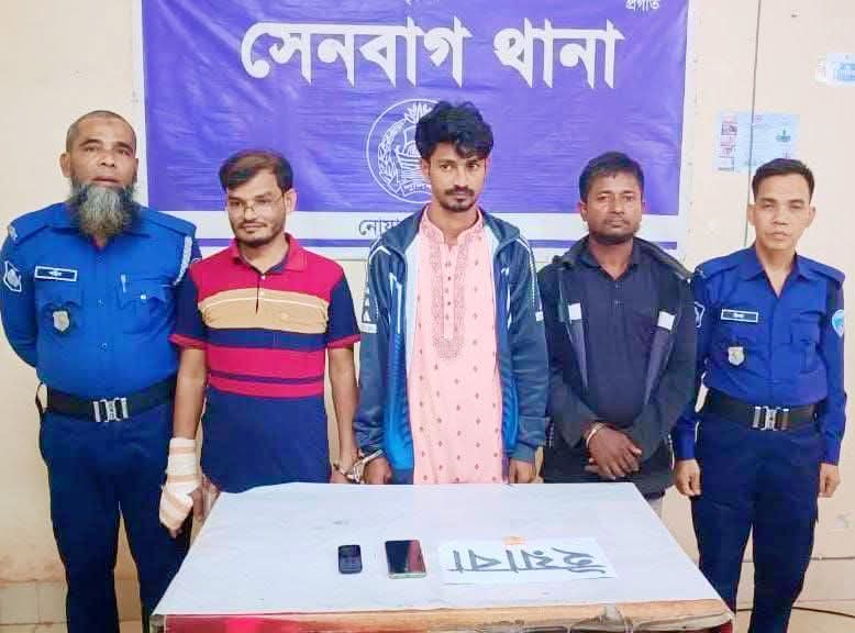 শুক্রবার (২২ নভেম্বর ২০২৫) রাত আনুমানিক ২টা ৩০ মিনিটে সেনবাগ থানাধীন ডমুরুয়া ইউনিয়নের গাজীরহাট এলাকায় চেকপোস্ট পরিচালনা করে তাদের আটক করা হয়। অভিযানটি পরিচালনা করেন সেনবাগ থানার এসআই (নিরস্ত্র) মোঃ বেলাল হোসেন, এএসআই (নিরস্ত্র) মোঃ জুয়েল রানা ও সঙ্গীয় ফোর্স।