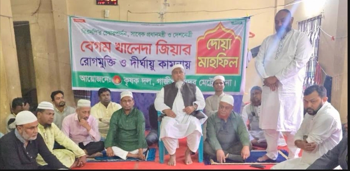 গাজীপুর সদর মেট্রো থানা কৃষক দলের উদ্যোগে দেশনেত্রী ও গণতন্ত্রের মা বেগম খালেদা জিয়ার দ্রুত রোগমুক্তি এবং সুদীর্ঘ হায়াত কামনা করে জোড়পুকুর পাড় মাদ্রাসায় এতিম ও হাফেজ ছাত্রদের অংশগ্রহণে এক শান্তিময় দোয়া মাহফিল অনুষ্ঠিত হয়েছে।