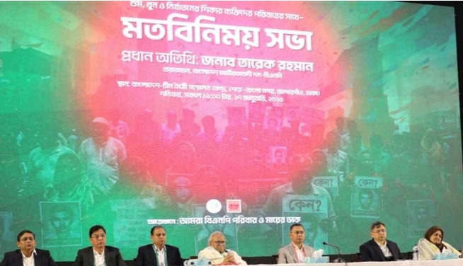 শনিবার (১৭ জানুয়ারি) সকাল সোয়া ১১টায় শুরু হওয়া এ সভার আয়োজন করে ‘আমরা বিএনপি পরিবার’ ও ‘মায়ের ডাক’। আয়োজকদের পক্ষ থেকে জানানো হয়, অতীতের আন্দোলনে নিপীড়নের শিকার পরিবারগুলোর অভিজ্ঞতা শোনা এবং তাদের পাশে থাকার অঙ্গীকারের অংশ হিসেবেই এ মতবিনিময়ের আয়োজন করা হয়েছে।