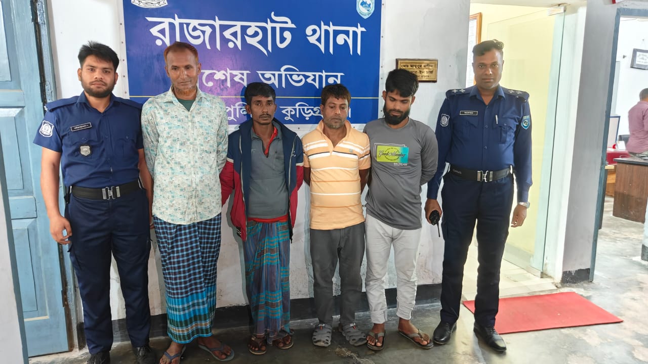 কুড়িগ্রামের রাজারহাট উপজেলার আদর্শ বাজার এলাকায় ২৯/০৩/২০২৬ ইং রাত আনুমানিক ১০ ঘটিকার সময় গোপন সংবাদের ভিত্তিতে বিশেষ অভিযান চালিয়ে জুয়া খেলার আসর থেকে জসিম,ফিরদৌস,ইউনুস ও দিলীপ নামের চার(৪)জুয়াড়িকে আটক করা হয়েছে।